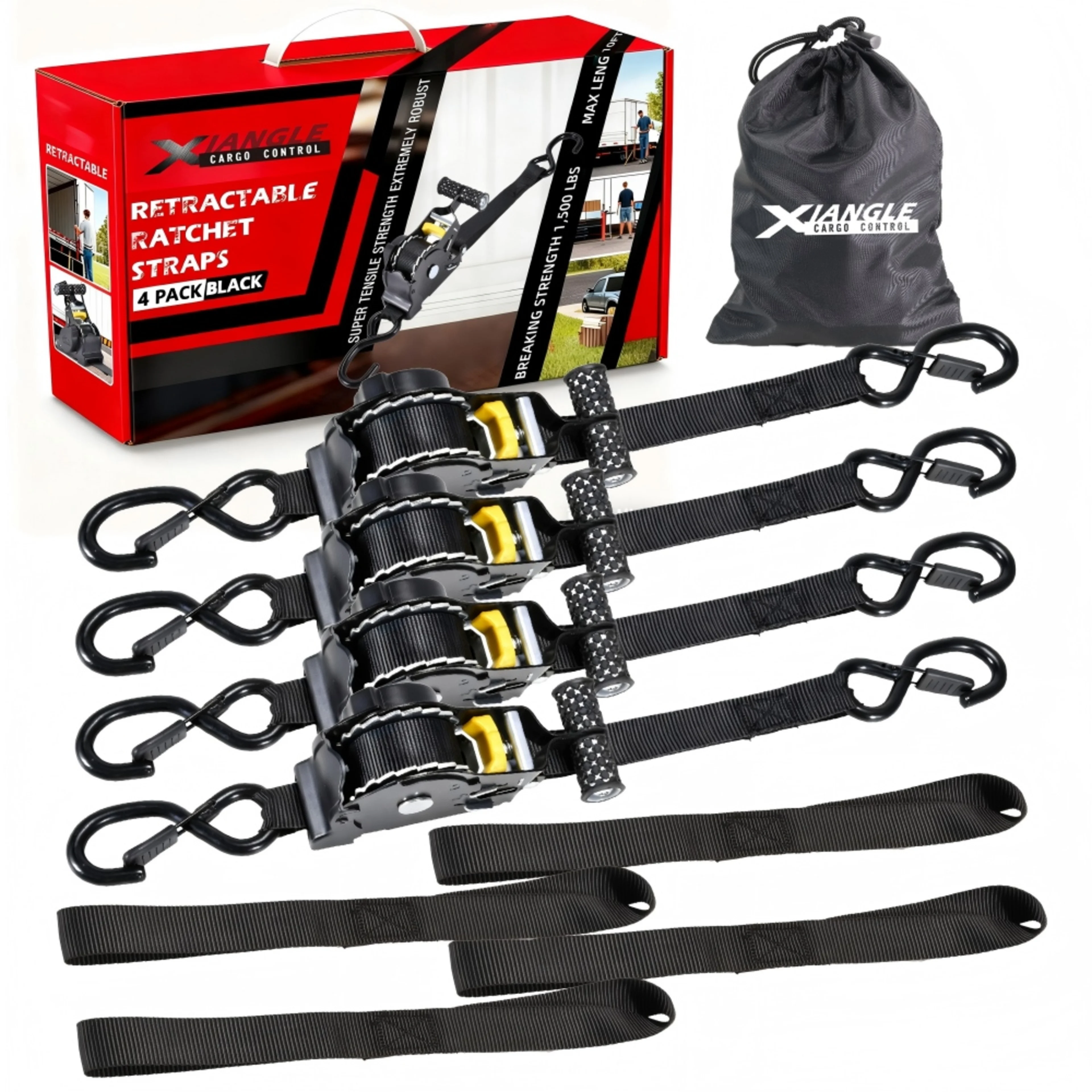 This retractable tie down provides dependable tensioning for motorcycle and powersports transport, equipped with a swivel carabiner hook and an integrated soft tie for gentle attachment to handlebars or painted components. Designed for a 1500 lbs break strength, it ensures stable load security with durable polyester webbing suitable for repeated use. The retracting mechanism eliminates loose strap clutter and speeds loading operations. Combined hardware and soft-tie versatility make it ideal for professional trailer, workshop, and logistics applications.